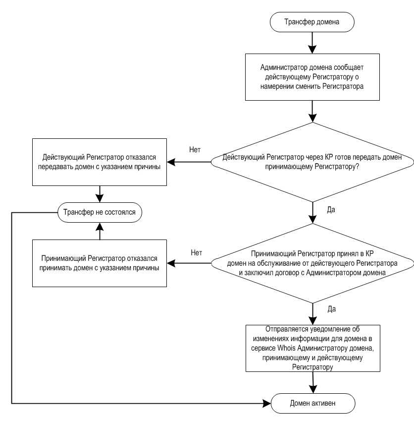 Администратору (владельцу) домена необходимо направить запрос текущему регистратору, а копию принимающему регистратору. Запрос направляется по электронной почте (e-mail), либо в бумажном виде с подписью владельца домена.